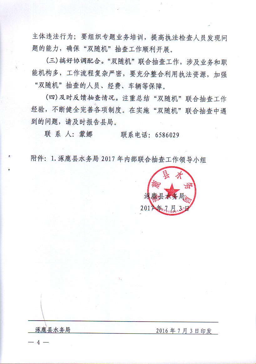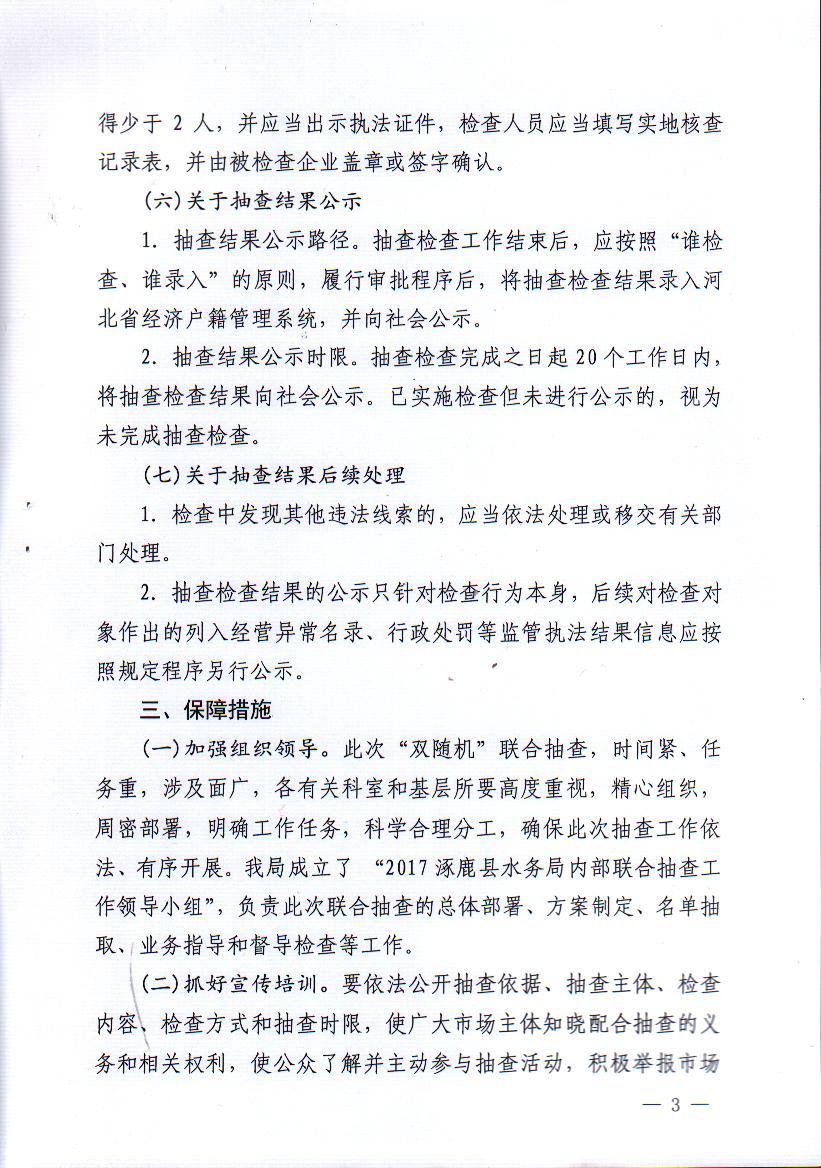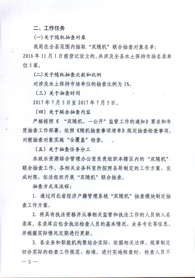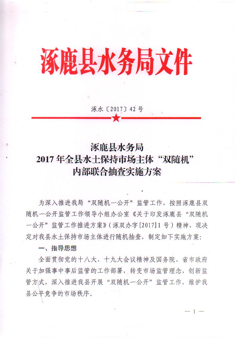 涿鹿县水务局2017年全县水土保持市场主体“双随机”内部联合抽查实施方案