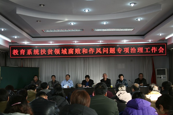 会议宣读了《教育扶贫领域腐败和作风问题专项治理实施办法》,明确了专项治理工作的目标、内容、要求及自查自纠整改的时间节点。会议强调,各部门要充分认识专项治理工作的必要性、重要性、紧迫性,下大力气扎扎实实地解决好全县教育扶贫领域腐败和作风问题,对扶贫工作中的腐败和作风问题进行逐项梳理排查,强化专项治理工作的政治自觉、思想自觉和行动自觉,把严肃工作纪律摆在更加突出的位置,要把教育扶贫各项工作做细做实,在执行各项资助政策中要坚决避免出现违规违纪问题,确保教育扶贫政策和项目资金精准落地,国家教育扶贫政策切实惠及到每一个家庭经济困难学生。